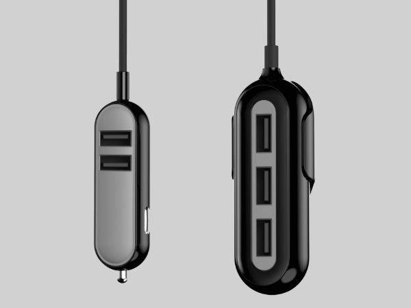Portronics Car Power IV is an elegant and sturdy 5 ports USB car charger, with two USB ports in front and three port-hub with a clip at the back connected with a 5 feet long cable. The sleek design with color-accented rubberized finish matches the plush interiors of your car / SUV.
