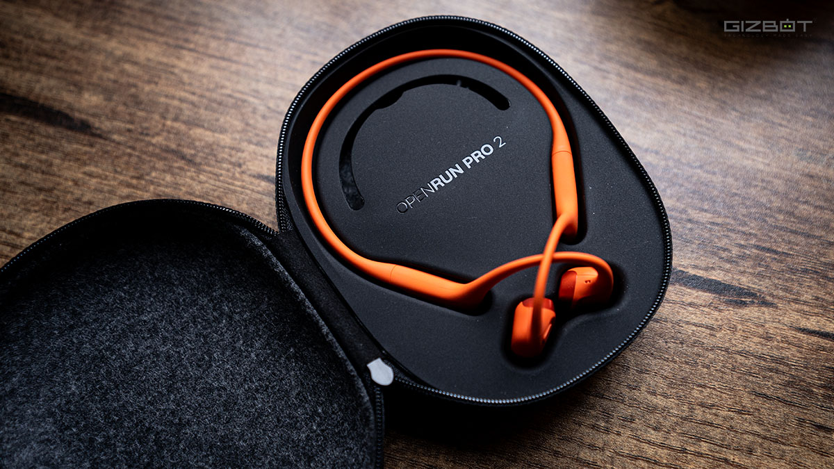 Shokz also bundles a carry case in the box. It’s useful if you’re throwing the headphones into a backpack or travelling, but it has a slight bulge to it, which makes it a little awkward for everyday carry. Most of the time, you’ll probably just skip it and let the headphones hang around your neck instead.