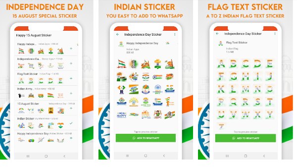 Also, you can head over to Google Play and search for Independence Day stickers. You will get several options to choose from, including multiple stickers with GIFs and so on. You can download any of your choices and add it to WhatsApp to send it to your contacts.