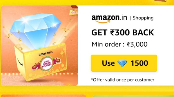 As of now, Amazon now has offers like Rs. 300 cashback when you purchase worth Rs. 3000 or more. To claim this offer, you have to spend 1500 diamond coins. Similarly, there are also offers on the various appliance like gas stoves and washing machines with up to Rs. 1000 cashback, where the users have to spend 200 Amazon Diamonds.