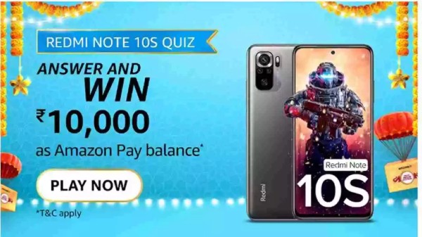 Amazon Redmi Note 10S Quiz Answers: Win Rs. 10,000 Amazon Pay Balance