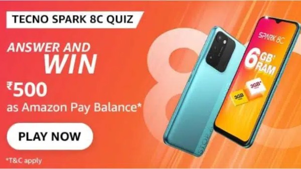 Amazon Tecno Spark 8C Quiz Answers: Win Rs. 500
