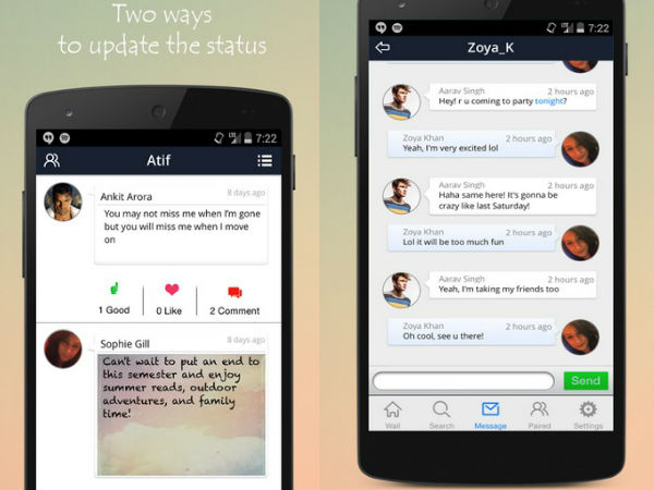 Also, there is an option which lets users update their statuses in two different ways: Users can either update a status the traditional way, or they can use a photo from Aashiqui's gallery.
