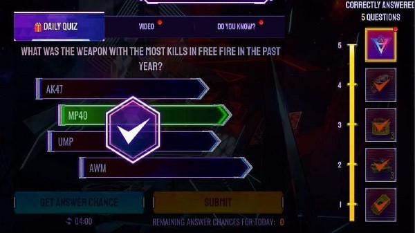 Garena Free Fire Quiz Answers For What Was The Weapon With Most Kills