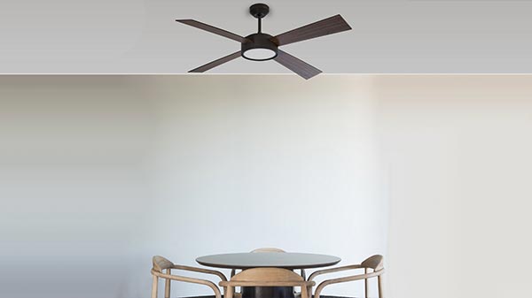 The smart ceiling fan comes with a wooden blade design with gloss and premium finish, it comes with 4 blades and is available in matte white motor with matte white blades and black motor with walnut color blades color option.