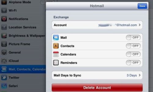 The last step will be to disable all other existing accounts on the device so that no one can access the mails which are not password protected. This can be done by going to the ‘Mail,Contacts, Calendar' settings and remove each mail account one by one. You should ensure that the send-only account you created is not deleted in this process. Also turn off the account’s mail setting and click on Done.