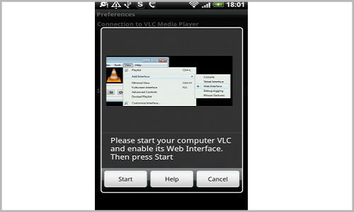 Now on VLC Direct in your mobile, select Start. The device will then scan for a VLC Player via the router and eventually will give you a message that it has found the VLC Player in your PC in the local network