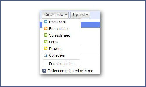 The drop down menu will list a range of options namely Document, Presentation, Form etc