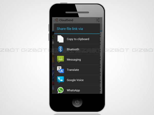 On selecting Cloudsend, the selected file will be uploaded to the folder in Dropbox with the same app name.