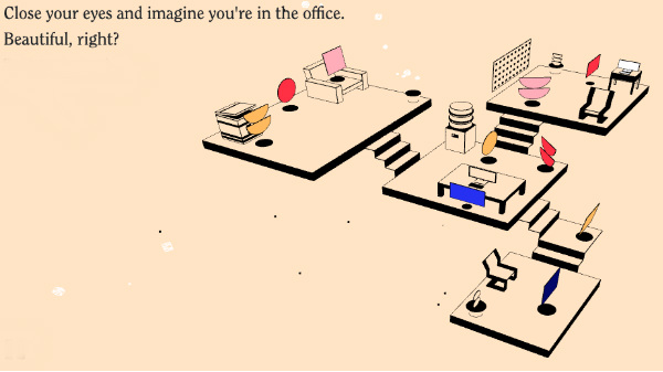 Similarly, the whole website is interactive, where one can recreate a specific sound, by clicking on various objects like copier machine, water dispenser, or even a sofa, which makes a sound when someone sits on it. One can activate the sound of multiple objects at the same time.