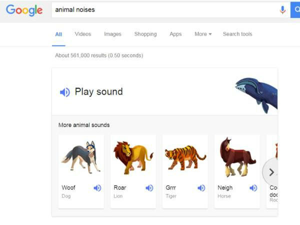 A quick search for "animal noises" on Google returns illustrations of animals, their names and a sample of what sound do they make, Mashable tech website reported.