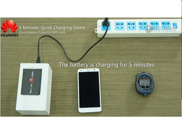 In order to come up with a solution to the existing battery issues, Huawei has announced a new quick-charge technology for faster battery charge. The company showed off two prototypes in videos posted online, one of which shows a smartphone battery which as per the company can be recharged up to half its capacity in merely five minutes.