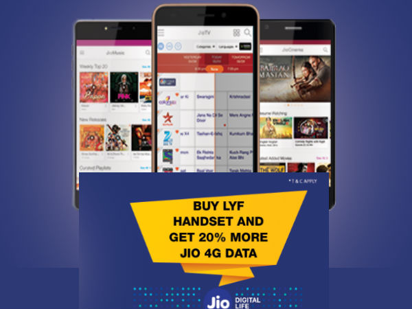 20% More JIO data offer and discounts on JIO LYF smartphones