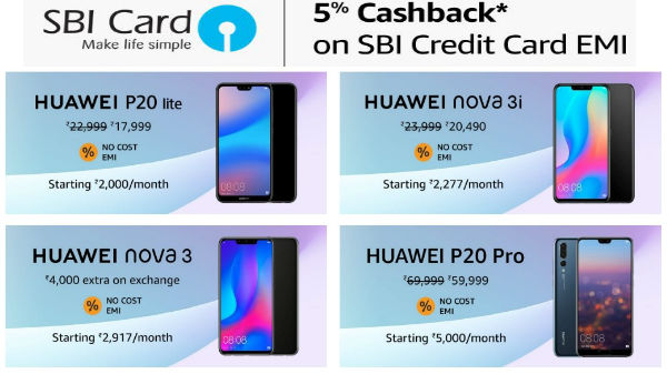 Amazon offers cashback, no cost EMI and exchange discount on Huawei P20 Lite, Nova 3i and more