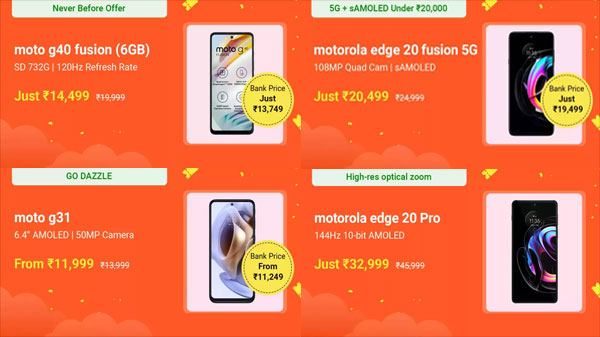 The Flipkart Mobile Phones Big Saving Days Sale is offering the Motorola Edge 20 Fusion for just Rs. 21,499. The Moto Edge 20 can be bought for just Rs. 25,999 instead of its original price tag of Rs. 34,999.