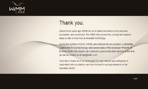 "During the summer of 2012, WIMM Labs entered into an exclusive, confidential relationship for our technology and ceased sales of the Developer Preview Kit".