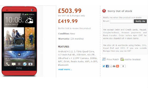 Back to reality; HTC has yet to announce the One in red colour. If you recall, the handset was spotted in HTC US site. Now, the device was spotted on U.K based retailer - Handtec. Later the handset went out of stock. If the device once again appears on the site then you have to spend a cool Rs.27,240 to get HTC One in red colour.