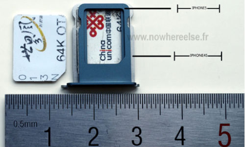 A new series of photographs of a smaller tray surfaced on Monday (August 6), fueling the already circulating rumors that the iPhone 5 will sport the more compact nano-SIM. French website Nowhereelese.fr posted images of a nano-SIM casing that it claimed will be equipped in the iPhone 5.