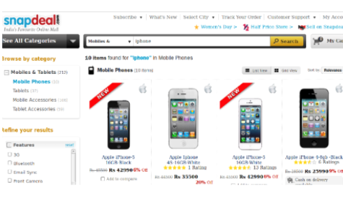 Snapdeal, an online retailer site is selling 16GB iPhone 5 at Rs 42,900, while its official price of Rs 45,500. At the same time, the 32GB model costing Rs 52,500 is available at Rs 50,100 and the 64GB model priced at Rs 59,500 is listed at Rs 57,200 on the website.