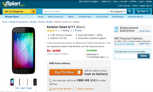 Now, Karbonn seems to have come up with a phablet dubbed as Smart A111. The device has been spotted on online retailer Flipkart with a price tag of Rs 10,290. This time, it is not Jelly Bean but Android 4.0 ICS.