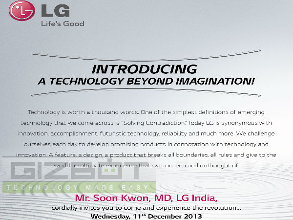 LG G Flex which was launched in Korea last month, followed by availability in US, Singapore and Hong Kong is all set to officially launch the G Flex in India on December 11 in Delhi based event. GizBot has just received a press invite from LG India following in an exclusive chat with Steve Koh, Head - Mobile Communication at LG India. Koh has confirmed today that the company will announce the G Flex in India this month.