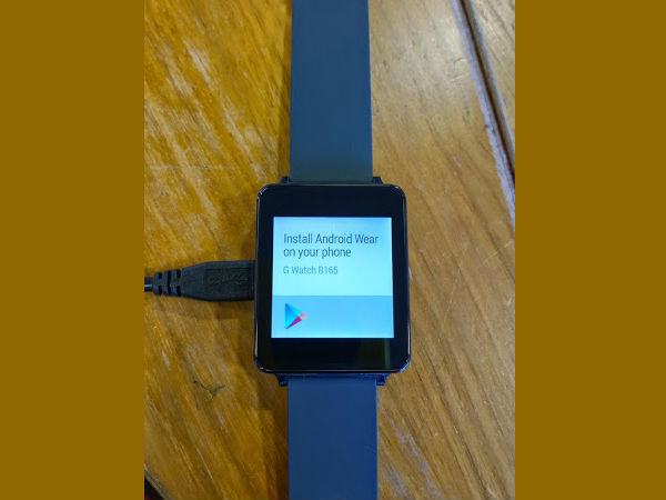 If you look at the image, the G Watch prompts the user to install Android Wear on the connected phone, and this supposedly means that you'd be able to have Android Wear as an installable app as well. The other things that you can notice is the charging/syncing port of the device on the left, and the rubberized matte-finish band.