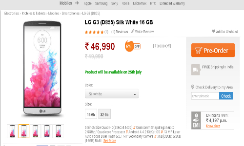 Priced at Rs. 46,990, the LG G3 will be made available in the 16GB and 32GB respectively. Moreover, the 32GB variant of the LG G3 is priced at Rs. 54,999, and according to the e-retailer the premium handset will be available starting July 25. Last month GizBot had exclusively informed that the LG G3 will be sold in India around July 25, with an event being planned in Mumbai.