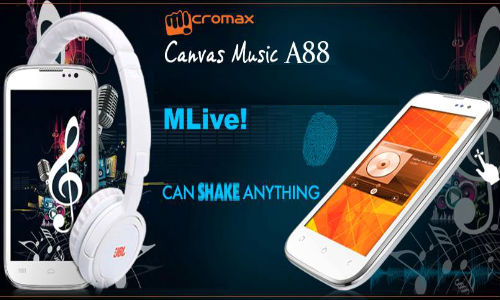 Specswise, Canvas Music A88 will come packed with 4.5-inch capacitive touch screen display with a resolution of 854 x 480 pixels, dual-core MediaTek MT6577 processor clocked to 1.2 GHz, 512MB RAM, Android 4.1.2 (Jelly Bean) platform, 5MP rear camera with Auto Focus and dual LED Flash and 0.3 MP front-facing camera for video calling. Also, Micromax Canvas Music A88 will come equipped with a 4GB internal memory - expandable up to 32GB with microSD, along with connectivity features including 3G, Wi-Fi 802.11 b/g/n, Bluetooth, GPS. The company has also claimed to provide a a talk time of 5 hours with 1800 mAh battery.