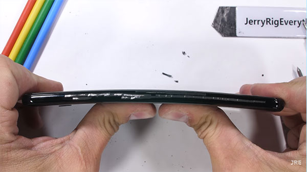 The bend test is the main highlight of JerryRigEverything videos, but Google Pixel 3XL survives the test, thanks to its glass sandwich with aluminum sides. In the video you can see that the devices scratch at Mohs hardness of 4 with a bit of scuffing at level 3. The Gorilla glass scratches at 7 with scuffing at 6. What this means is the Google Pixel 3 and Pixel 3XL are more prone to scratching than most glass smartphones.