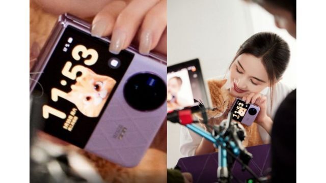 The image of the Vivo X Flip was posted on the Chinese social media site Weibo by Digital Chat Station (via PhoneArena). The image gives us a good look at the large cover display and the circular camera cutout that looks to house two cameras with a ZEISS branding.