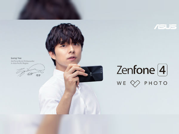 The poster shows the new Asia Pacific brand ambassador of Asus, actor Gong Yoo holding a smartphone with the company's branding. The device has two camera lenses on its rear panel, which are accompanied by a LED flashlight. We assume it to be the regular Asus ZenFone 4 since the smartphone's camera setup is not protruded like the ZenFone 4 Max and Pro.