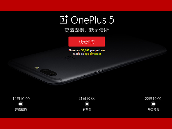 OnePlus 5 reservation opens in China; 8GB RAM variant available