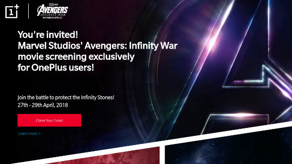 OnePlus is also announced a give away of over 6000 complimentary movie tickets for Avengers: Infinity War on 27, 28 and 29 April in some selected theatres across 10 cities in India.