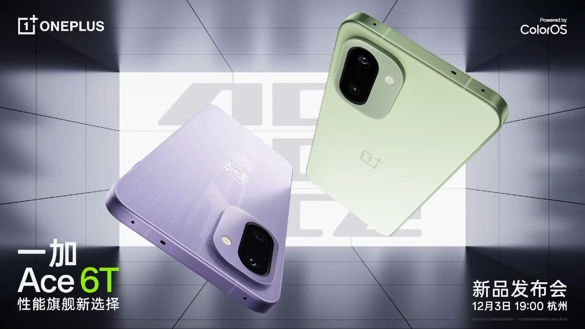 The OnePlus Ace 6T launch date in China is set for December 3 at 07:00 pm local time or 04:30 pm IST. Moreover, the OnePlus Ace 6T will also be rebranded as the OnePlus 15R in the Indian and global markets on December 17.