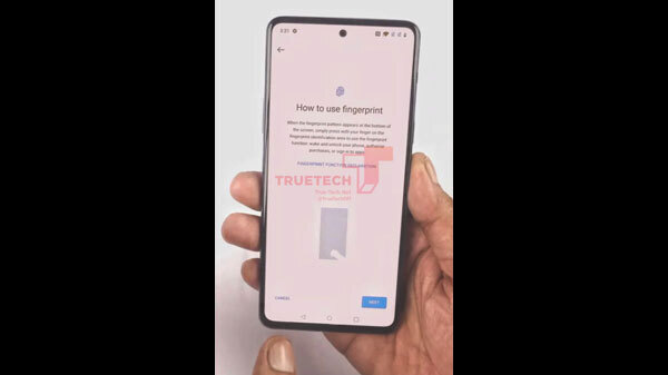 The image further reveals that the smartphone has an AMOLED display which is set up with a screen fingerprint sensor. According to the live image, we can also detect the volume rocker on the left and the power button on the right side of the smartphone.