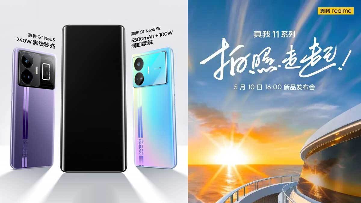 The Realme 11 series launch date in China will take place on May 10 at 04:00 pm (local time). Xu Qi Chase, VP at Realme, recently shared an image of what appears to be the Realme 11 Pro+ alongside the Realme GT Neo 5 and GT Neo 5 SE.
