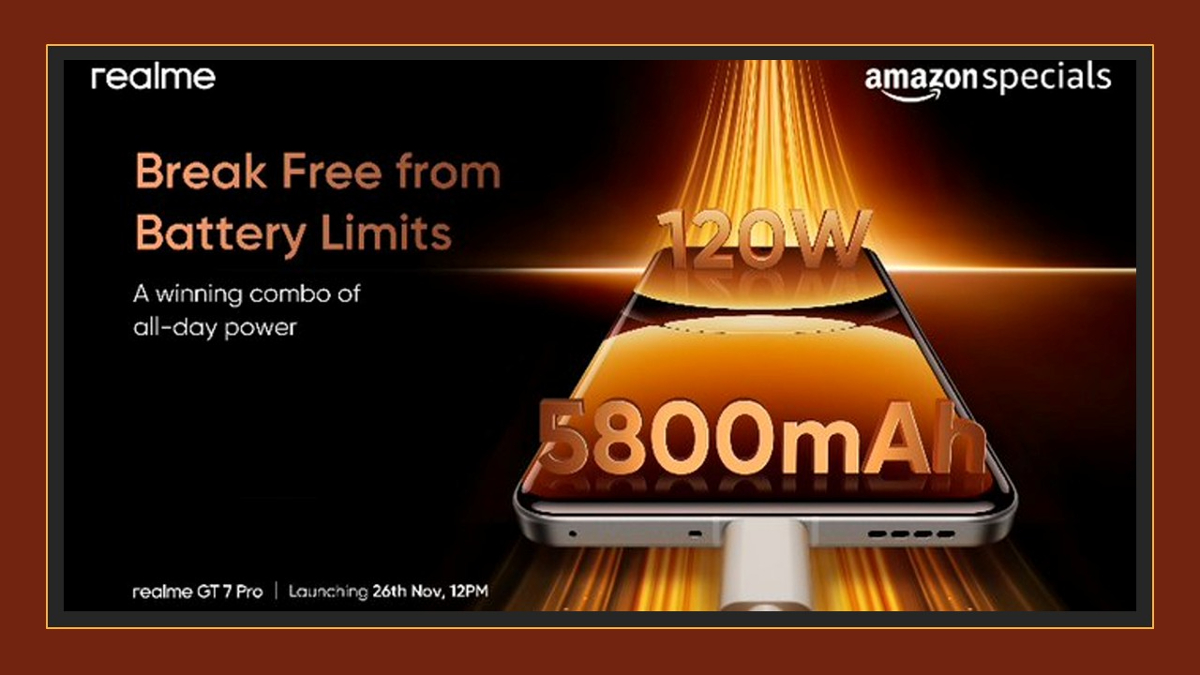 The Realme GT 7 Pro launch date in India is set for November 26 at 12 noon IST. Following its launch, the Realme GT 7 Pro will go on sale in India through Amazon. Additionally, pre-bookings for the Realme GT 7 Pro in India kick off today.