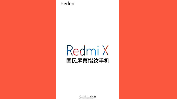 The official teaser image of the Redmi X smartphone confirms that the device will feature an in-display fingerprint sensor. The Redmi X is the first smartphone from the company with an in-display fingerprint sensor.