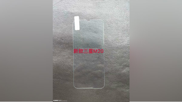 Samsung Galaxy M20 screen protector image leaks showing waterdrop notch