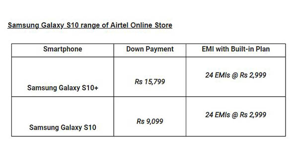 Customers can pre-order the Samsung Galaxy S10+ and S10 on Airtel Online Store starting today and the smartphones will be delivered to customer's doorstep starting March 6, 2019.