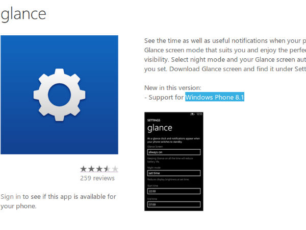 Nokia has updated its Glance app to support the next version of Microsoft's mobile OS. The app's official page clearly writes, "support for Windows Phone 8.1" below the app description. Thus you can now be sure about the update which is expected to launch soon. To be precise, Microsoft is going to reveal all the features of Windows Phone 8.1 at its upcoming Build 2014 conference slated in April 19.