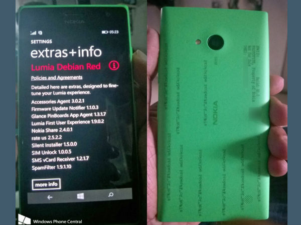 What is quite strange is that this phone is running on a new version of Nokia specific software, called "Lumia Debian Red". But WP Central says that this is the company's version of the Windows Phone 8.1 Update 1 that is expected to be available to the general public later this year.