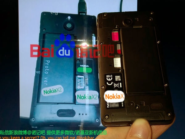 This leaked image shows uncovered back of Nokia X2 prototype and compares it with a Nokia X back. As per the rumors, the Nokia X2 is said to come with an improved 1GB RAM, and will run on Snapdragon 200 processor.