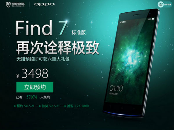 Chinese smartphone maker Oppo has been phenomenal with its devices in India. The company's N1 smartphone was one that actually hits the bulls eye in terms of impressing the mobile phone fans. Now the Find 7 smartphone, which comes with a QHD display has finally become available for pre-order in China. The price of the device is $564 (approx. Rs. 33,845).