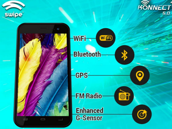 The Swipe Konnect 5.0, currently available at Rs 8,999, comes in black and white color options and the company is also offering a free screen guard, flip cover and premium business navigator worth Rs.1,499 with the handset.