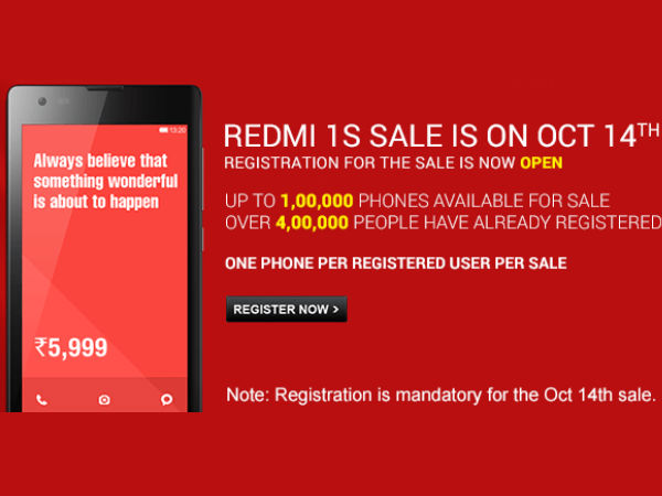 The device will start selling from 2PM onwards. Moreover, the Chinese mobile phone manufacturer will be selling 1,00,000 units of Redmi 1S in India today. The company has already received around 3,00,000 registration on Flipkart. The online shopping website notifies that the ones who missed out on buying the smartphone on September 30 sale, need to re-register.