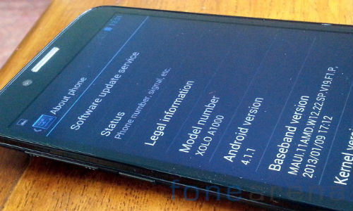 According to the exclusive report by FoneArena, the folks over there have managed to acquire a prototype of an announced handset claimed as Xolo A1000 from the 'About Phone' menu.