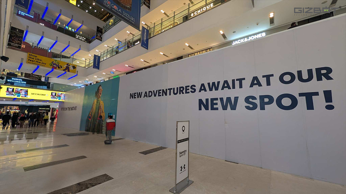 Anyone familiar with the mall knows the ground floor is premium turf. And just there, sat one massive, unusually wide construction zone, completely wrapped, completely anonymous, and completely too-perfect to ignore. The hoarding simply said, “We’re on the move, new adventures await at our new spot!” with no logo, no brand, just a lady in the middle holding a couple of shopping bags. So, naturally, I had my doubts. But because this felt a little too convenient, I did a full loop of the mall to compare.