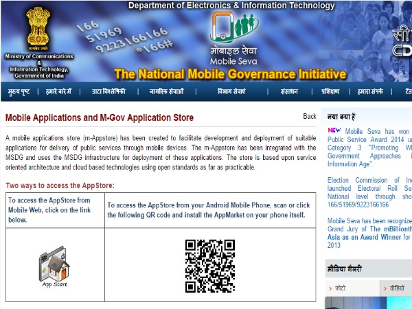 He said the 'Mobile Seva' is a countrywide initiative on mobile governance that aims to enable all government departments and agencies to provide services on various mobile channels such as short message service (SMS), integrated voice response system (IVRS), unstructured supplementary service data and mobile applications.