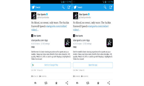 Moreover, according to the partnership, when a link to starsports.com is tweeted, Twitter users on mobile will have the option to download the starsports.com App. Once the mobile application is installed, they will be able to open the app directly by clicking the tweeted link, to watch the video.